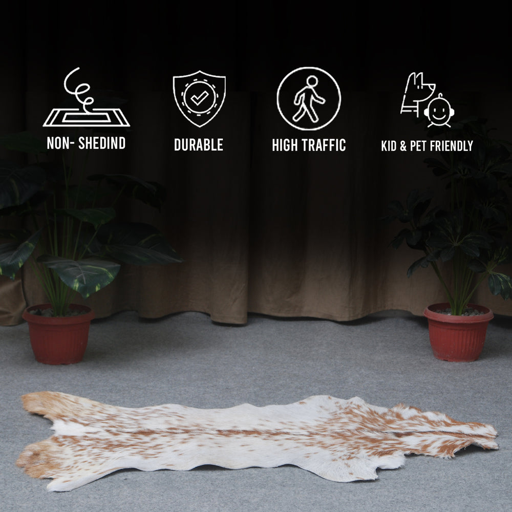 *No two rugs are exactly alike, ensuring you possess a truly special piece of art for your floor. Because each brown and white Goat Skin Rug is unique, we recommend examining the high-resolution photos in the listing to appreciate the full range of colour variations and find the perfect rug to match your style.