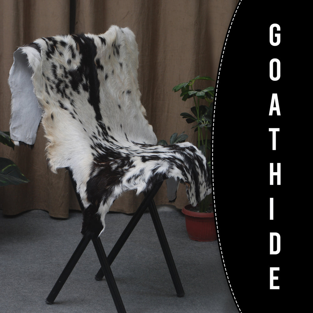 Embrace the beauty of nature with a one-of-a-kind black and white goat skin rug. Each rug boasts unique colour variations, creating a stunning statement piece.