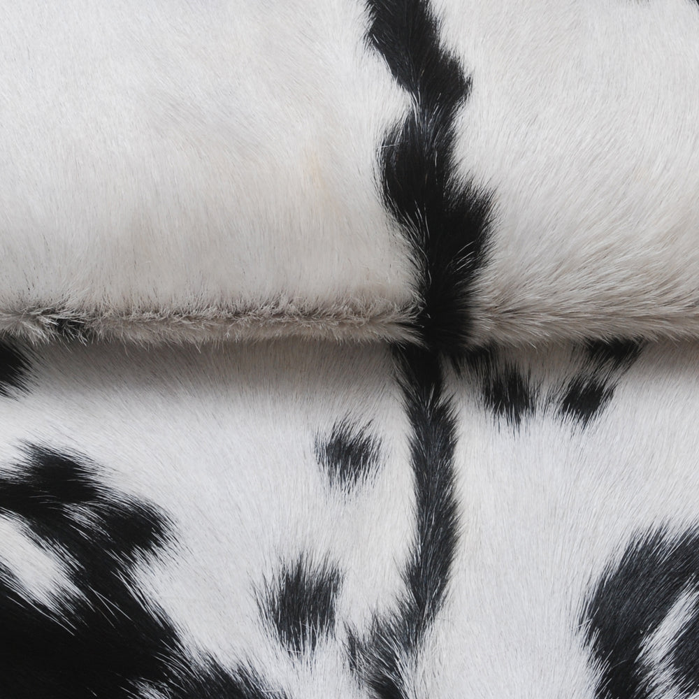 Crafted from 100% natural Goat Skin Rug from Celestial Leather, each goat skin rug boasts its own distinctive patterns of black and white, making it a one-of-a-kind piece. The back is made of suede for non-slip surface, and we offer various sizes to fit your specific needs.