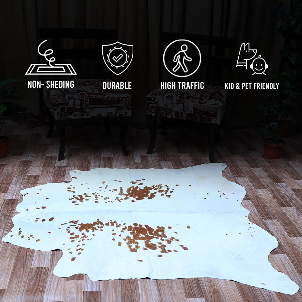 Discover the beauty of our cowhide rugs, crafted from 100% natural hides and sourced from top tanneries worldwide. Each cowhide rug is a unique piece with a soft, low pile and a radiant natural sheen that enhances any room. The cowhide shown in the picture is the one you'll receive, ensuring authenticity. Our cow skin rugs are durable and versatile, making them perfect area rugs for adding elegance, luxury, and warmth to any bedroom or living room. Ideal for upholstery, these calf skin rugs offer a touch of sophistication to your decor.
