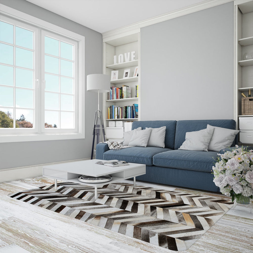 - Superior Handmade Cutting Cowhide design & Finished Leather Patchwork Rug