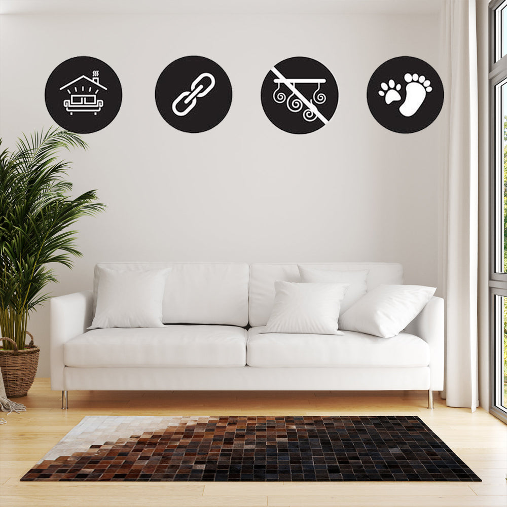 Looking for a unique way to add some personality to your home décor? Look no further than this cowhide patchwork rug! Made from real cowhide leather, this area rug is sure to turn heads. Not only is it a beautiful addition to any room, but it's also practical – perfect for covering up messy areas or adding a touch of luxury to a simple space. If you're in the market for a unique and functional rug, don't miss out on this one!