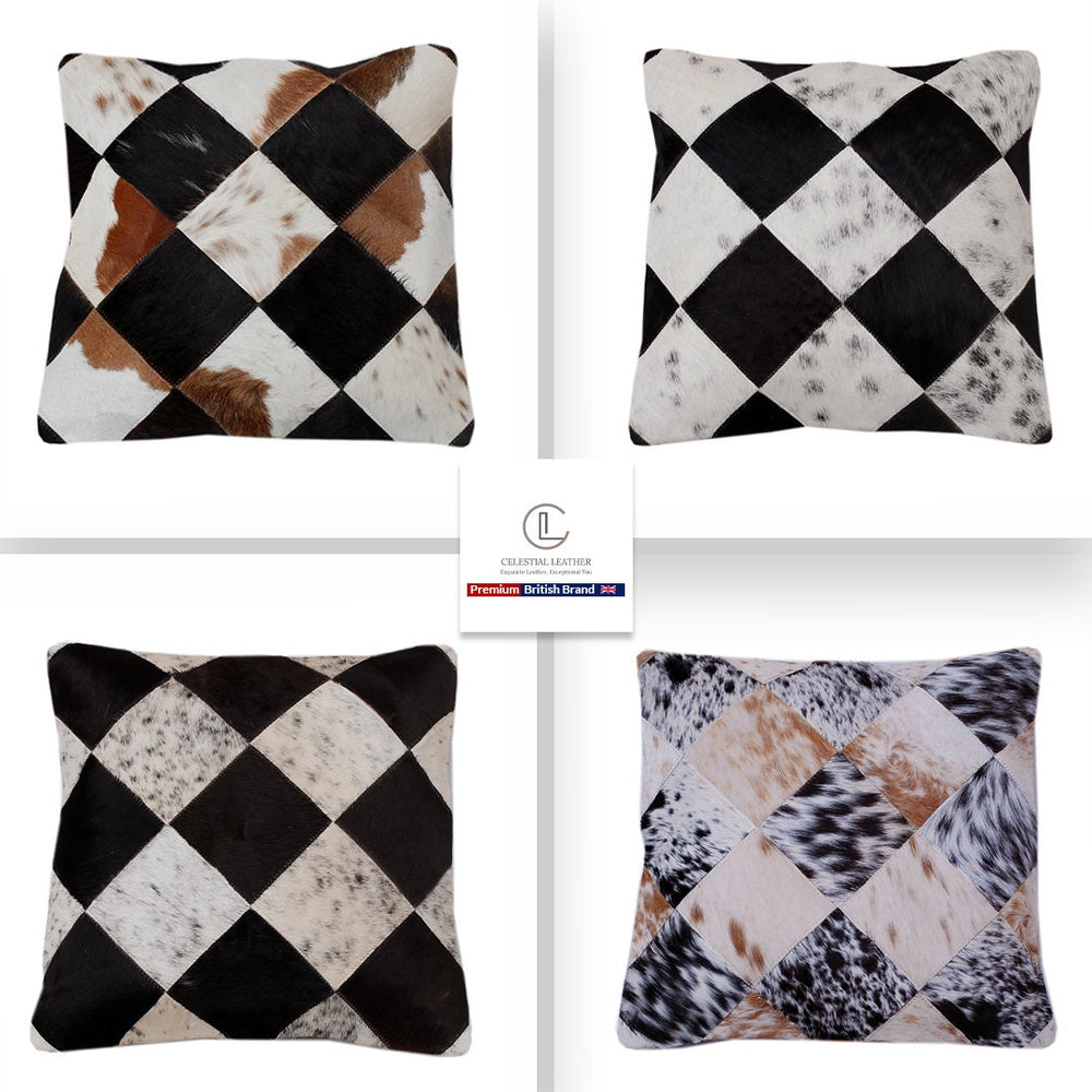 Bring a touch of nature's luxury and comfort into your home with these exquisite multicolour patchwork cowhide cushion covers!