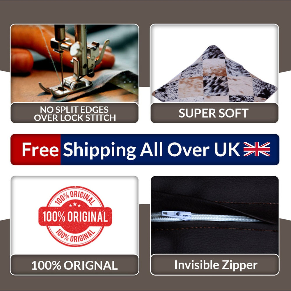 Please note: Due to the natural variations in cowhide, each cushion cover will have its own unique pattern, making it a truly special piece.