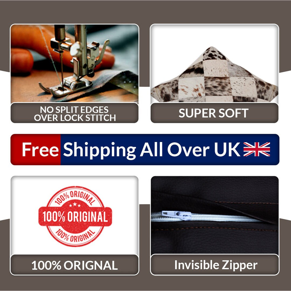 Please note: Due to the natural variations in cowhide, each cushion cover will have its own unique pattern, making it a truly special piece.