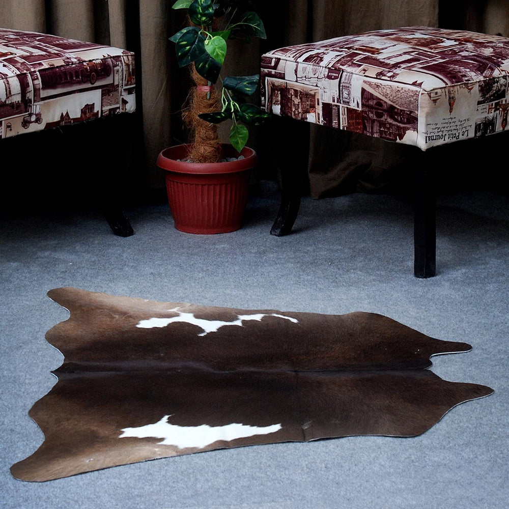 Add a touch of rustic charm to your home with our dark brown and white cowhide rugs. These animal print rugs are small in size, ranging from 10 to 15 square feet. Each rug is unique, showcasing the natural markings of the cowhide.