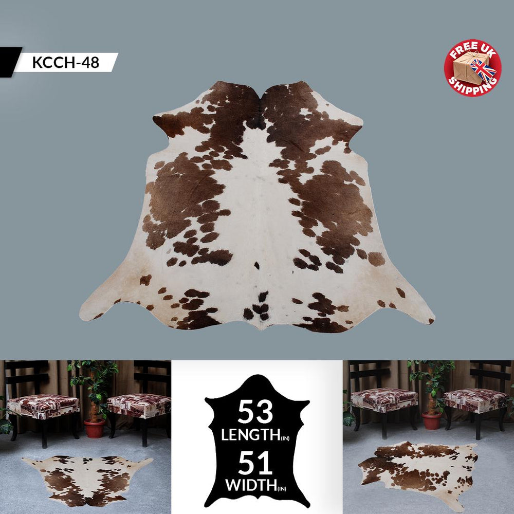 Discover the beauty of our cowhide rugs, crafted from 100% natural hides and sourced from top tanneries worldwide. Each cowhide rug is a unique piece with a soft, low pile and a radiant natural sheen that enhances any room. The cowhide shown in the picture is the one you'll receive, ensuring authenticity. Our cow skin rugs are durable and versatile, making them perfect area rugs for adding elegance, luxury, and warmth to any bedroom or living room. Ideal for upholstery, these calf skin rugs offer a touch of sophistication to your decor.