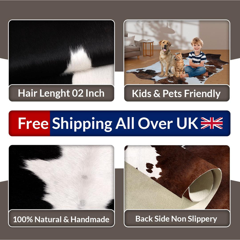 Add a touch of luxury to your home with our Large Brown and White Cowhide Rug! Crafted from 100% natural hides sourced from top tanneries worldwide, each rug is unique in color and pattern. The soft, low pile and radiant natural sheen enhance any room, while the hypoallergenic and non-slip suede back make it perfect for any space.