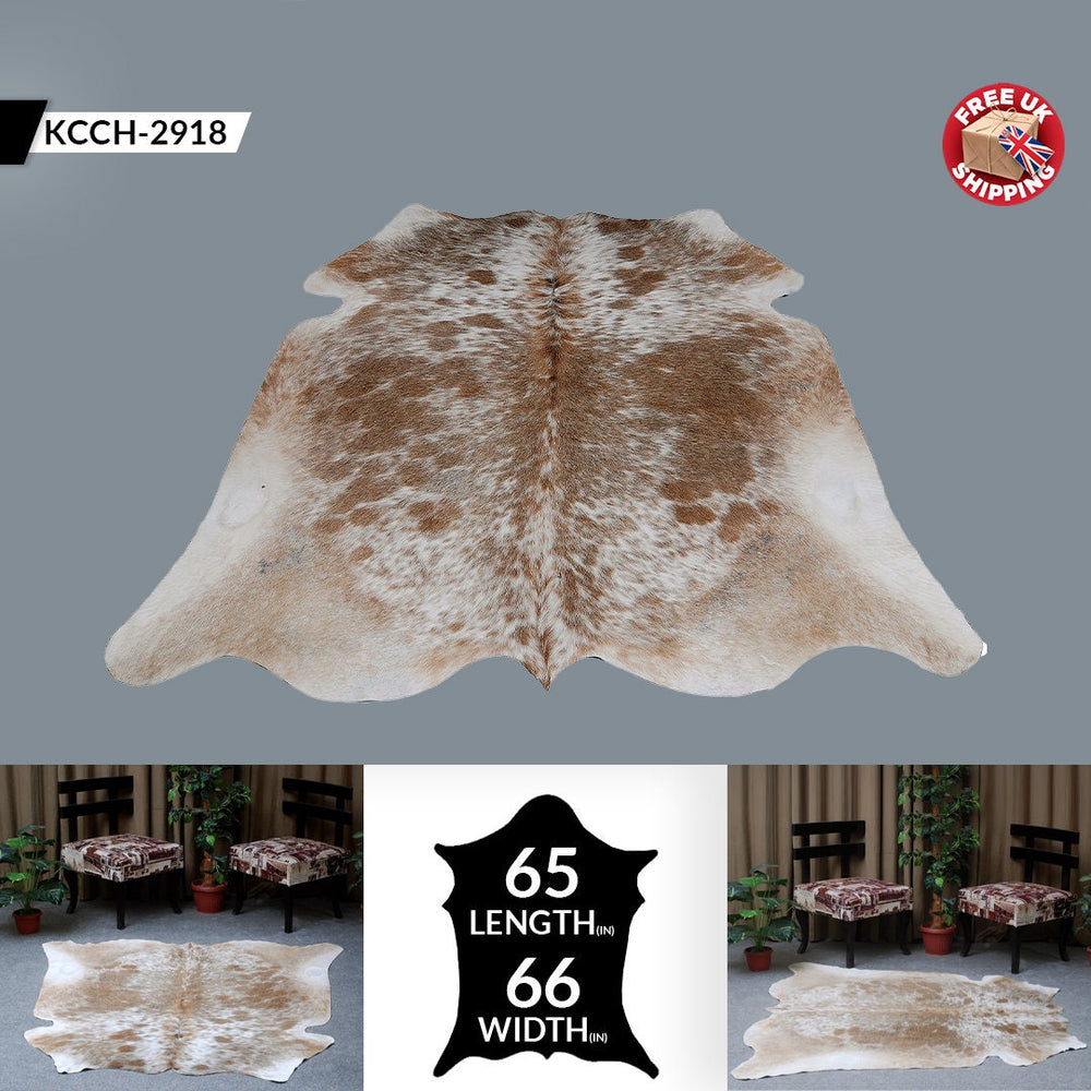 Discover the beauty of our cowhide rugs, crafted from 100% natural hides and sourced from top tanneries worldwide. Each cowhide rug is a unique piece with a soft, low pile and a radiant natural sheen that enhances any room. The cowhide shown in the picture is the one you'll receive, ensuring authenticity. Our cow skin rugs are durable and versatile, making them perfect area rugs for adding elegance, luxury, and warmth to any bedroom or living room. Ideal for upholstery, these calf skin rugs offer a touch of sophistication to your decor.