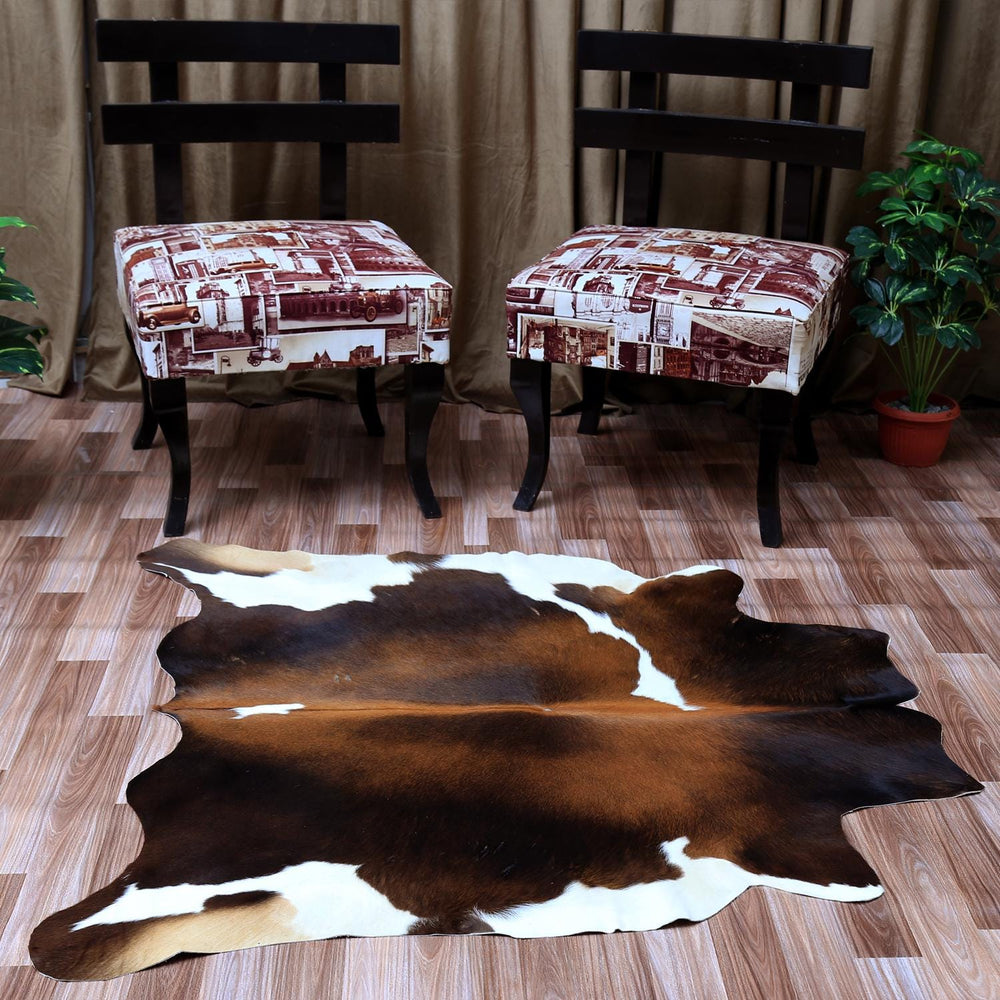Experience handcrafted luxury with our cowhide rugs, made from 100% natural hides meticulously sourced for superior quality. The soft, low pile and natural sheen add a touch of rustic charm to any space. Each rug is unique, showcasing the cow's distinctive dark brown and white markings as shown in the picture.