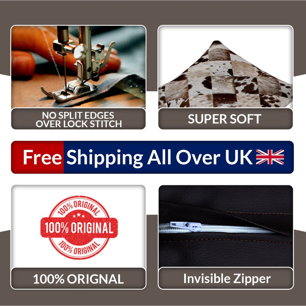 Please note: Due to the natural variations in cowhide, each cushion cover will have its own unique pattern, making it a truly special piece.