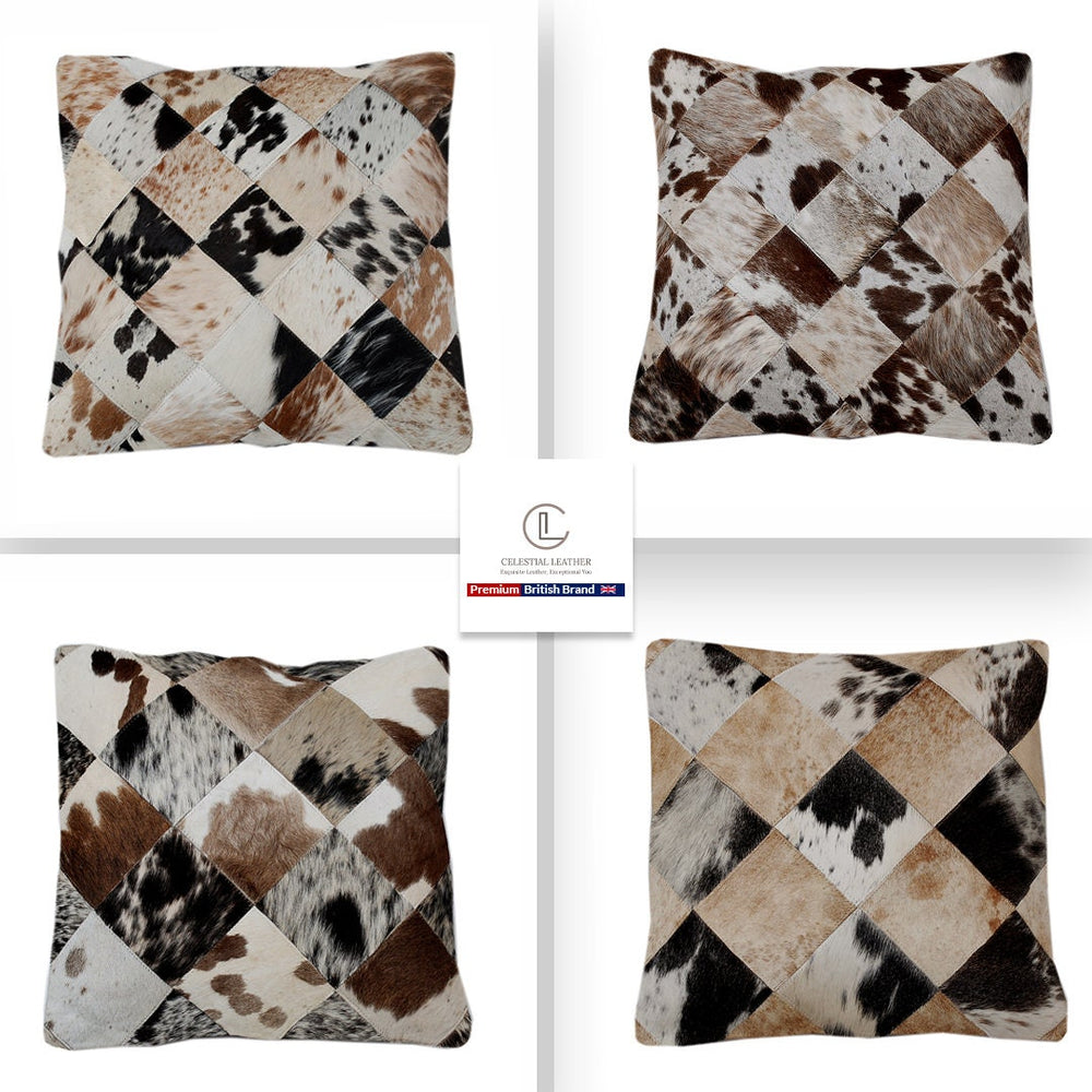 Bring a touch of nature's luxury and comfort into your home with these exquisite multicolour patchwork cowhide cushion covers!