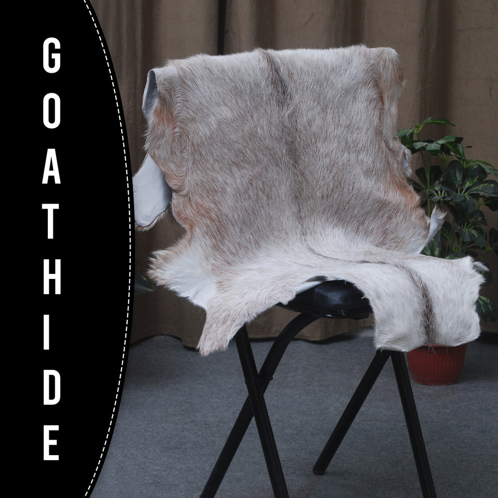 Embrace the beauty of nature with a one-of-a-kind brown and white goat skin rug. Each rug boasts unique colour variations, creating a stunning statement piece.
