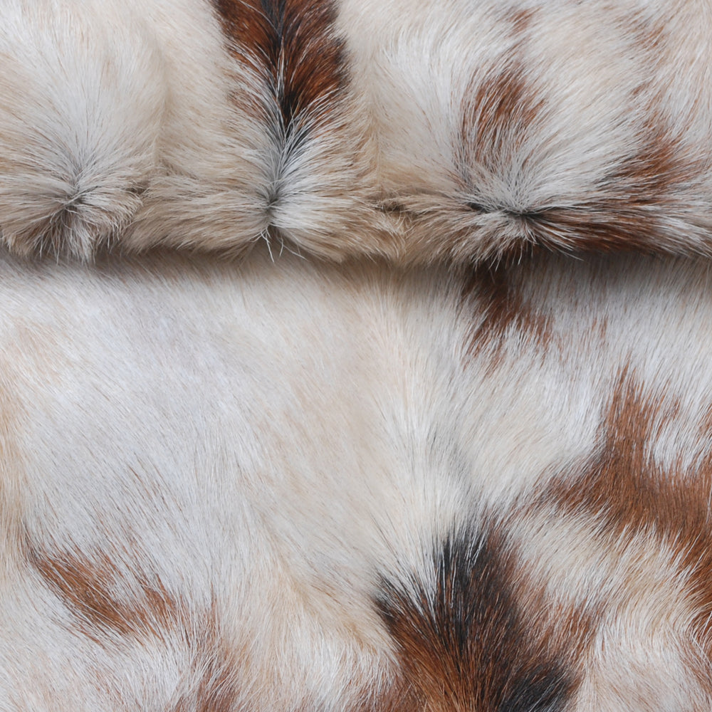 Elevate your room’s aesthetic with our eye catching tricolor Goat Skin Rug. Its bold graphics design exudes modern sophistication and adds a touch of elegance to any décor. Soft and gentle on the skin, it’s also kit and pet friendly, making it a practical choice for any household. Plus, its hypoallergenic and non- shedding properties ensure a lifetime of effortless style.