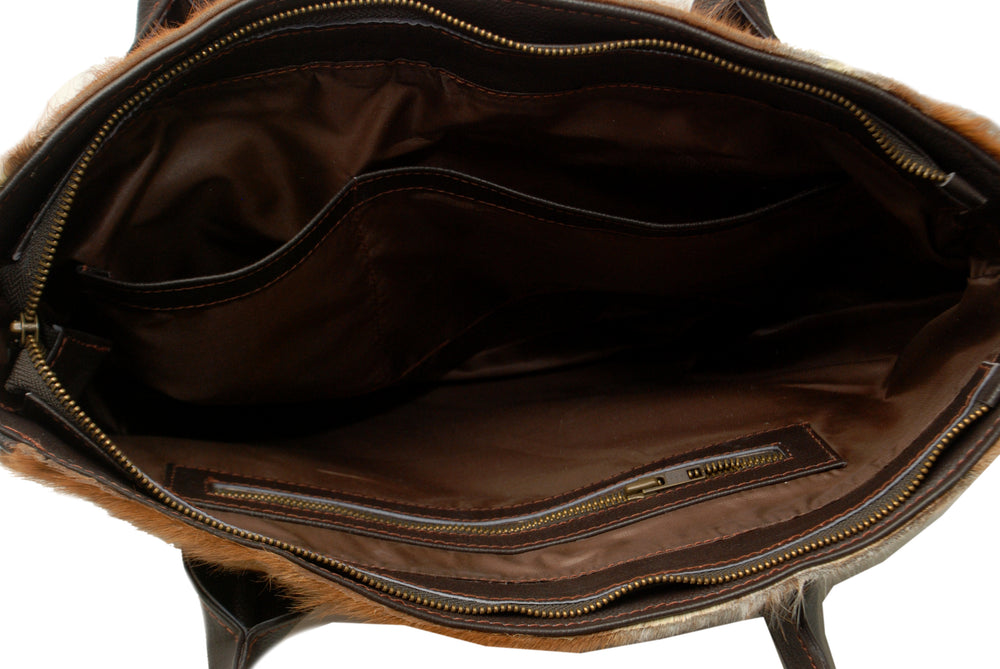 2. Spacious and Practical: With its generous size, this cowhide tote bag offers ample space for all your essentials. It features multiple compartments and pockets to keep your belongings organized and easily accessible.