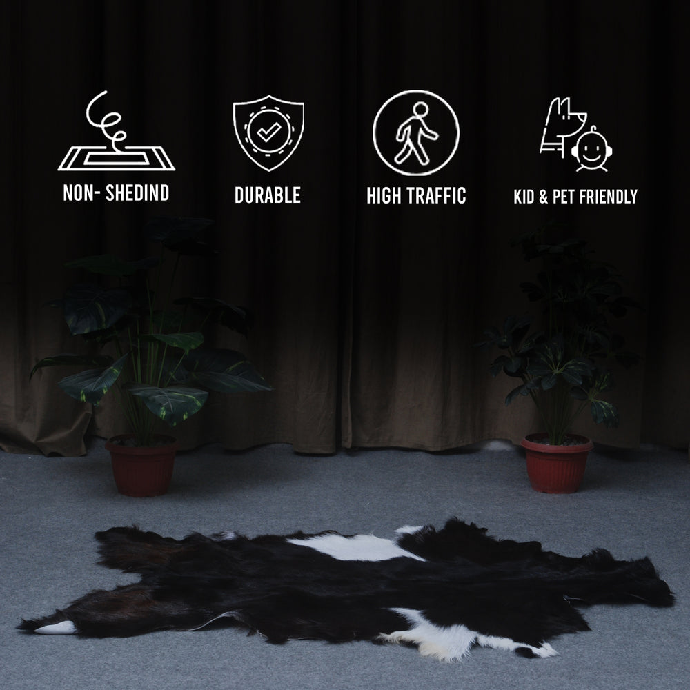 *No two rugs are exactly alike, ensuring you possess a truly special piece of art for your floor. Because each black and white Goat Skin Rug is unique, we recommend examining the high-resolution photos in the listing to appreciate the full range of colour variations and find the perfect rug to match your style.