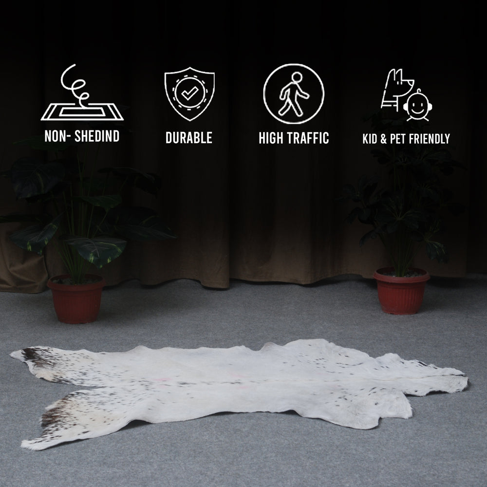 Made from 100% natural, hand-selected goat skin leather, this rug offers a luxurious feel underfoot and adds a touch of rustic charm to your living space.