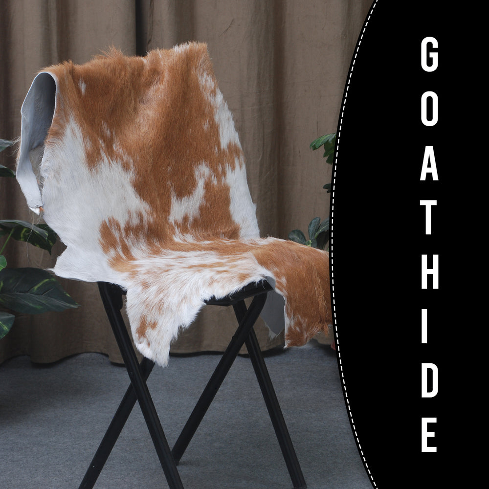 Embrace the beauty of nature with a one-of-a-kind brown and white goat skin rug. Each rug boasts unique colour variations, creating a stunning statement piece.