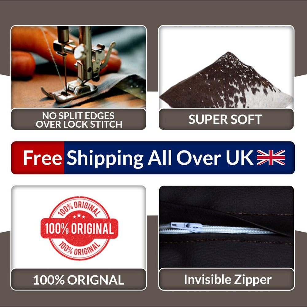 Please note: Due to the natural variations in cowhide, each cushion cover will have its own unique pattern, making it a truly special piece.