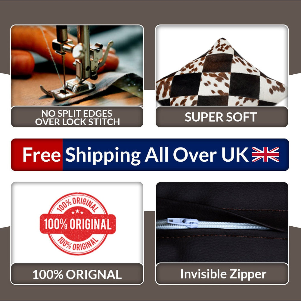 Please note: Due to the natural variations in cowhide, each cushion cover will have its own unique pattern, making it a truly special piece.