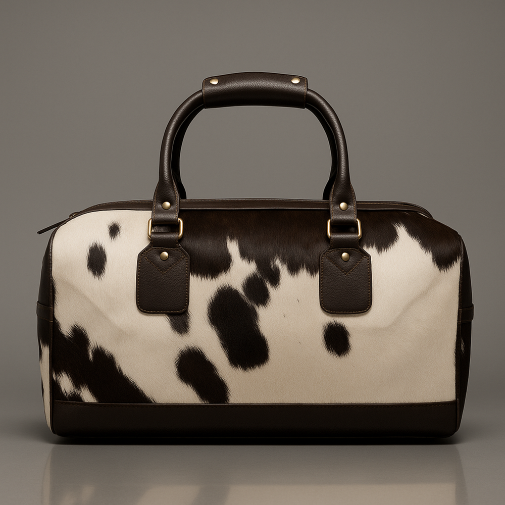 The exquisitely crafted Cowhide Duffle is made from genuine cowhide leather with premium grain and real cowhide hair.