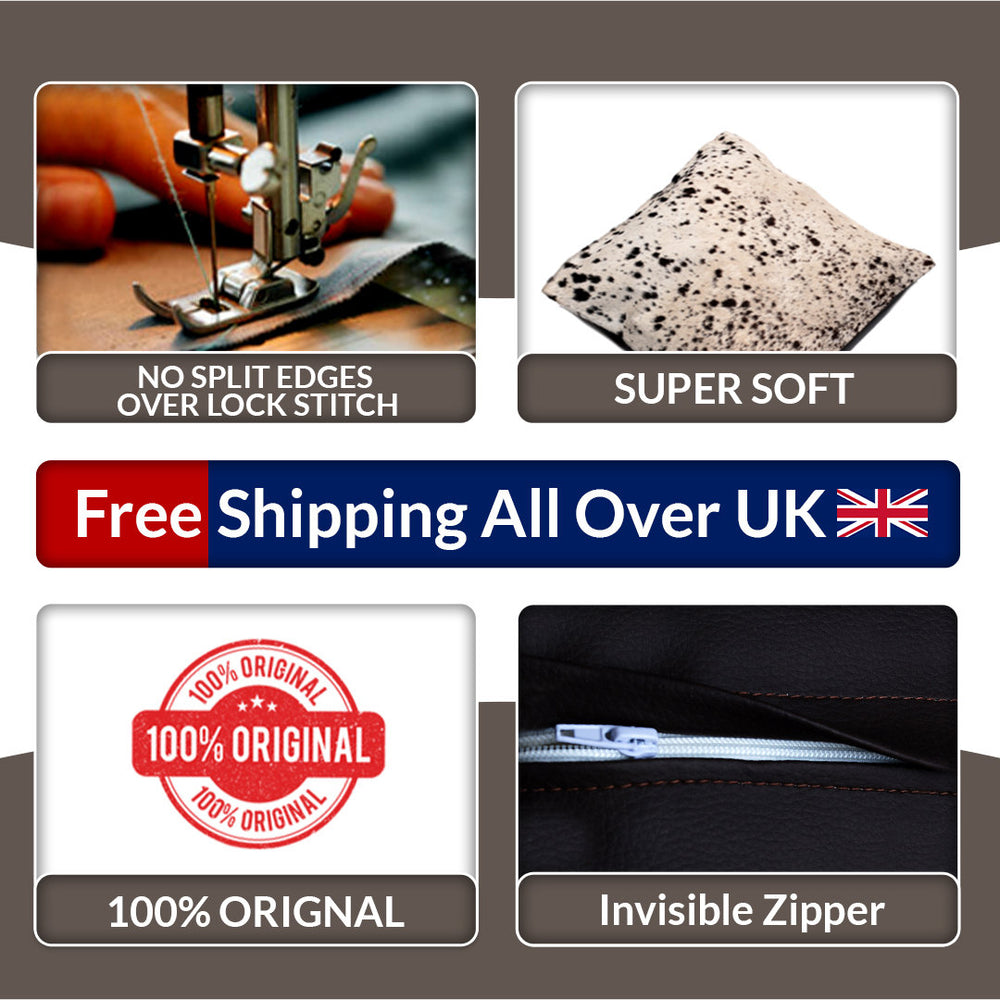 Please note that due to the natural variations in cowhide, each cushion cover will have its own unique pattern, making it a truly special piece.