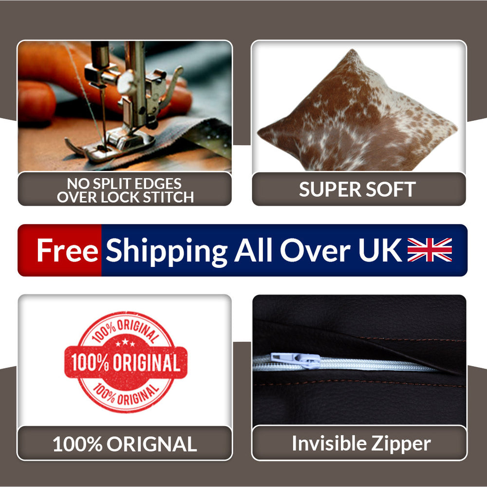 Please note: Due to the natural variations in cowhide, each cushion cover will have its own unique pattern, making it a truly special piece.