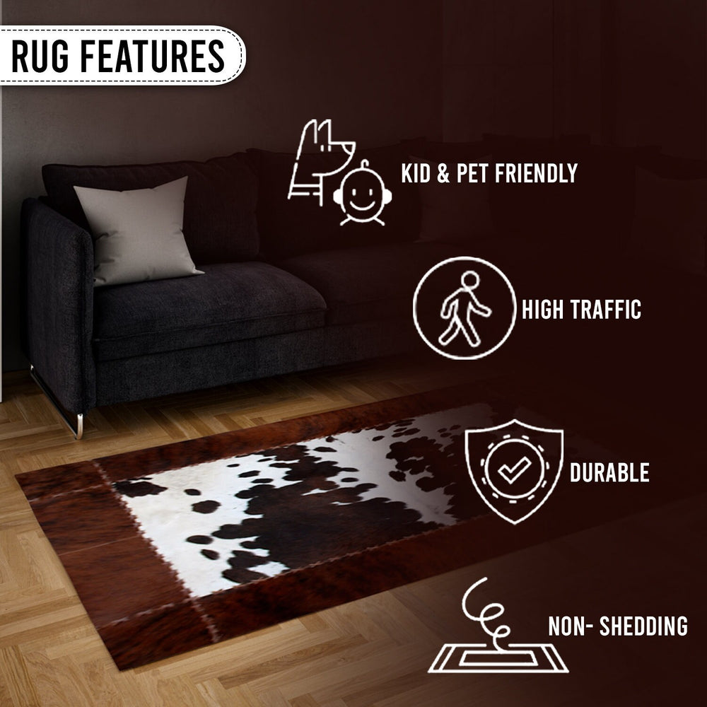 This handmade patchwork rug features a zig-zag stitching and weighs 2 KG & 500 Gram. The exterior is made of cowhide hair on leather, with faux leather lining on the other side. Please note that this is a natural animal skin product and may change in appearance over time with regular wear. It is not recommended for high traffic areas and caution should be taken when moving furniture. Some hair loss may occur.