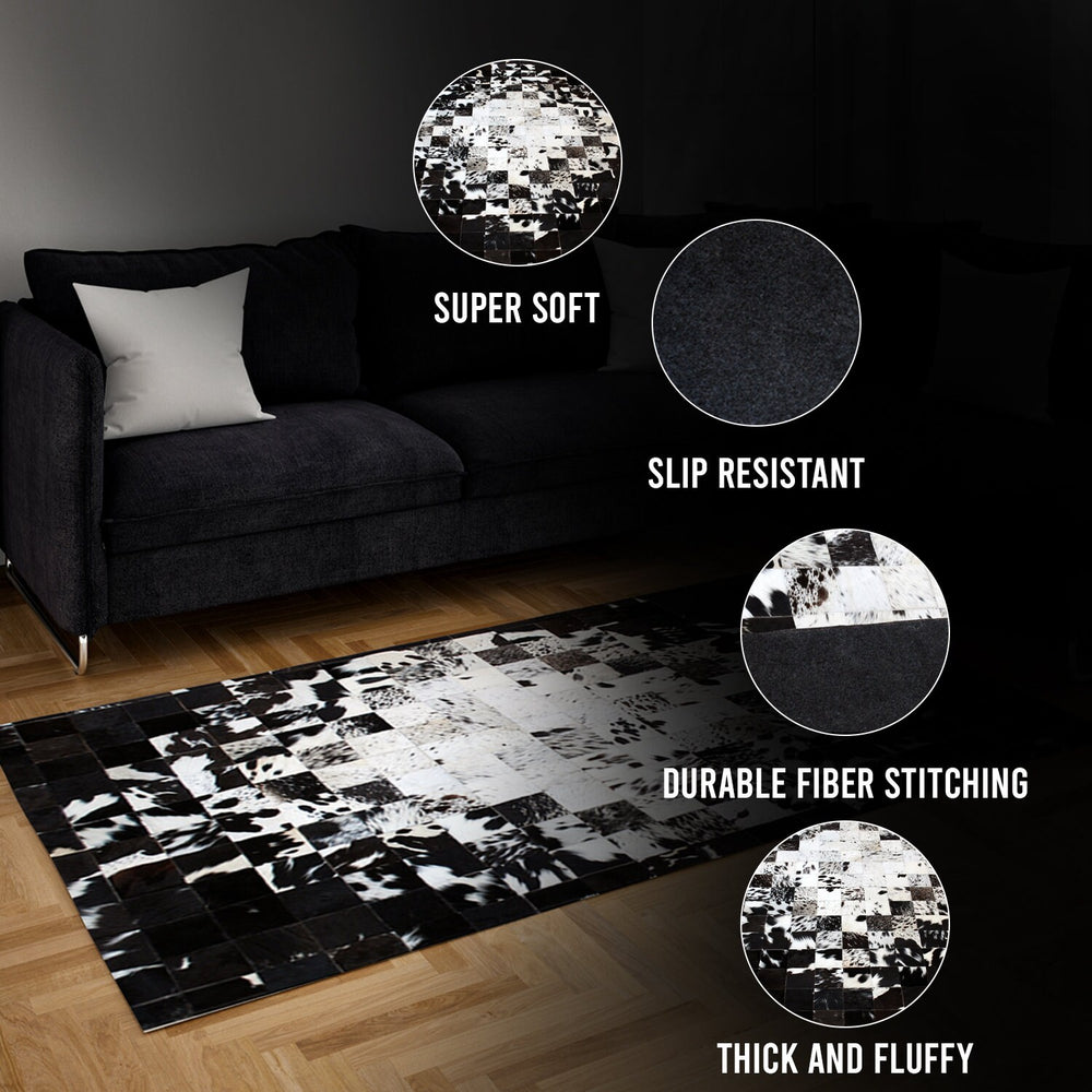 Looking for a unique way to add some personality to your home décor? Look no further than this cowhide patchwork rug! Made from real cowhide leather, this area rug is sure to turn heads. Not only is it a beautiful addition to any room, but it's also practical – perfect for covering up messy areas or adding a touch of luxury to a simple space. If you're in the market for a unique and functional rug, don't miss out on this one!