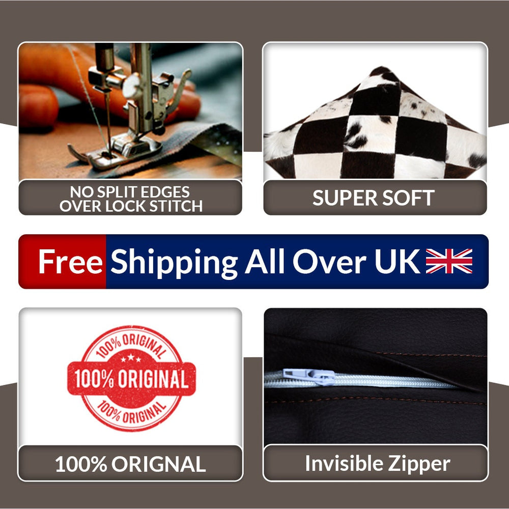 Please note: Due to the natural variations in cowhide, each cushion cover will have its own unique pattern, making it a truly special piece.